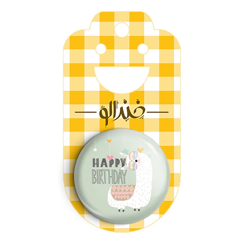 پیکسل 44 میلی متری تولد خندالو با روکش سلفون حرارتی مات مخملی ضدخش و قطعه پشتی رنگی تولید شده است.پلاستیکی پشت پیکسل با سوزن یک تکه ثابت و بدون لغزش و جا به جایی، ایستایی بسیار بهتری نسبت به پشتی فلزی پیکسل دارند که این مهم در تولید این محصول نیز رعایت شده است.