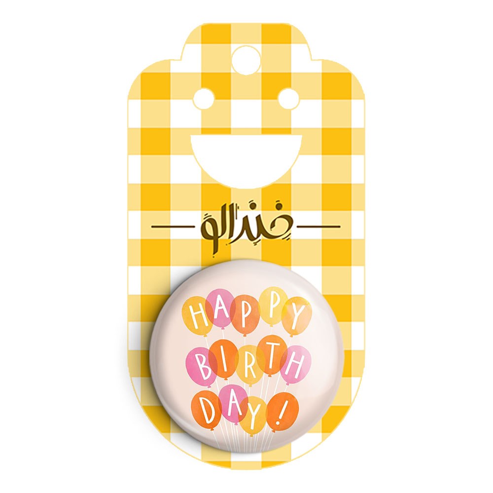 پیکسل 44 میلی متری تولد خندالو با روکش سلفون حرارتی مات مخملی ضدخش و قطعه پشتی رنگی تولید شده است.پلاستیکی پشت پیکسل با سوزن یک تکه ثابت و بدون لغزش و جا به جایی، ایستایی بسیار بهتری نسبت به پشتی فلزی پیکسل دارند که این مهم در تولید این محصول نیز رعایت شده است.