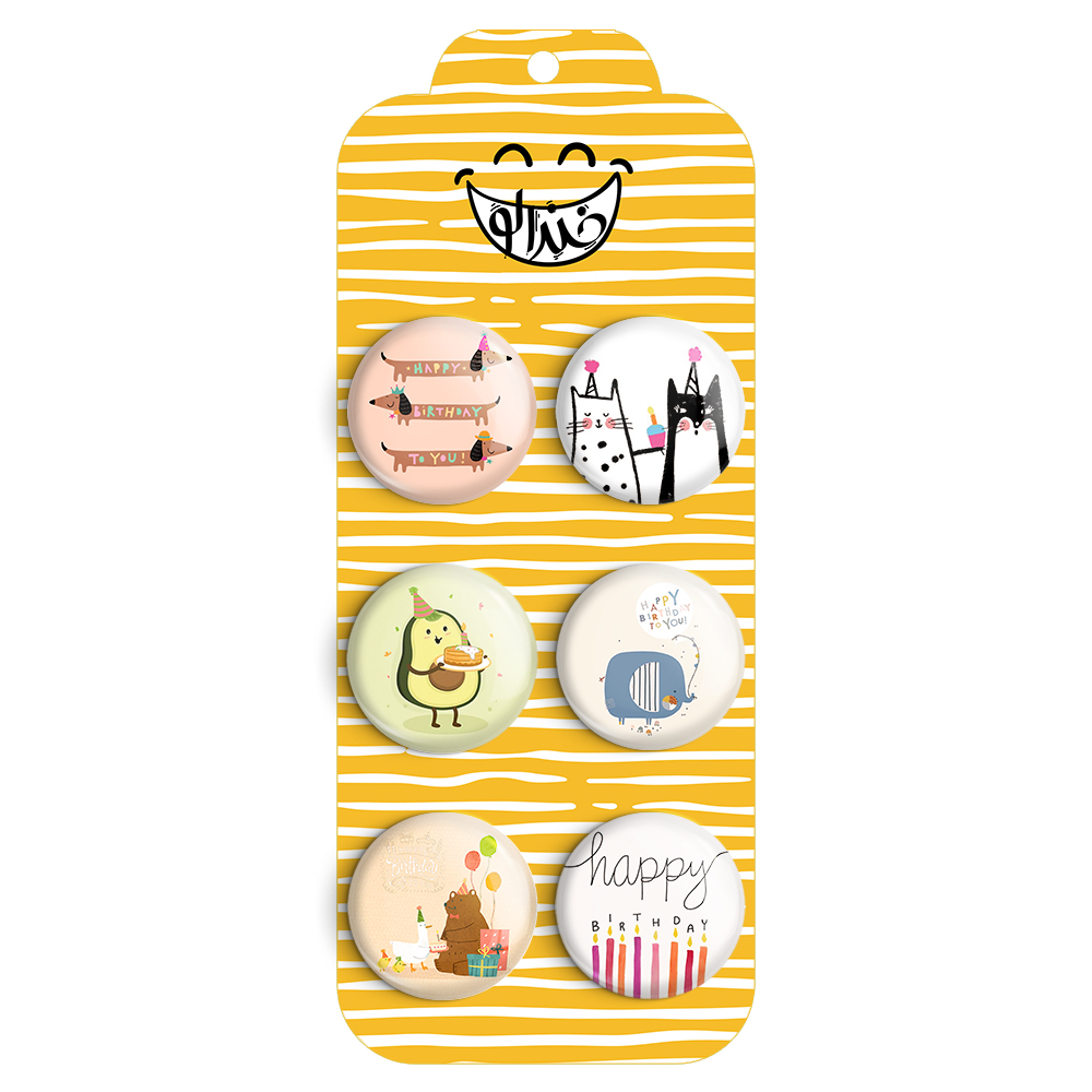 مجموعه 6 عددی پیکسل خندالو طرح تولد با روکش سلفون حرارتی براق ضدخش و قطعه پشتی رنگی تولید شده است. قطعات پشتی از میان 6 رنگ سفید، مشکی، صورتی، زرد، آبی و قرمز که با توجه به نوع و رنگبندی طرح روی پیکسل انتخاب شده اند تولید می شود و در هر بسته بندی مطابق عکس محصول می باشد. قطعات پلاستیکی پشت پیکسل با سوزن یک تکه ثابت و بدون لغزش و جا به جایی، ایستایی بسیار بهتری نسبت به پشتی فلزی پیکسل دارند که این مهم در تولید این محصول نیز رعایت شده است. چاپ پیکسل نیز با دستگاه های استاندارد و با بهترین سطح کیفی صورت گرفته و طرح با شفافیتی مثال زدنی و با سلفونی بدون شکست نور بر روی پیکسل نقش بسته است. همچنین بسته بندی جذاب و مینیمال پیکسل ها، آنها را مناسب هدیه کرده است..