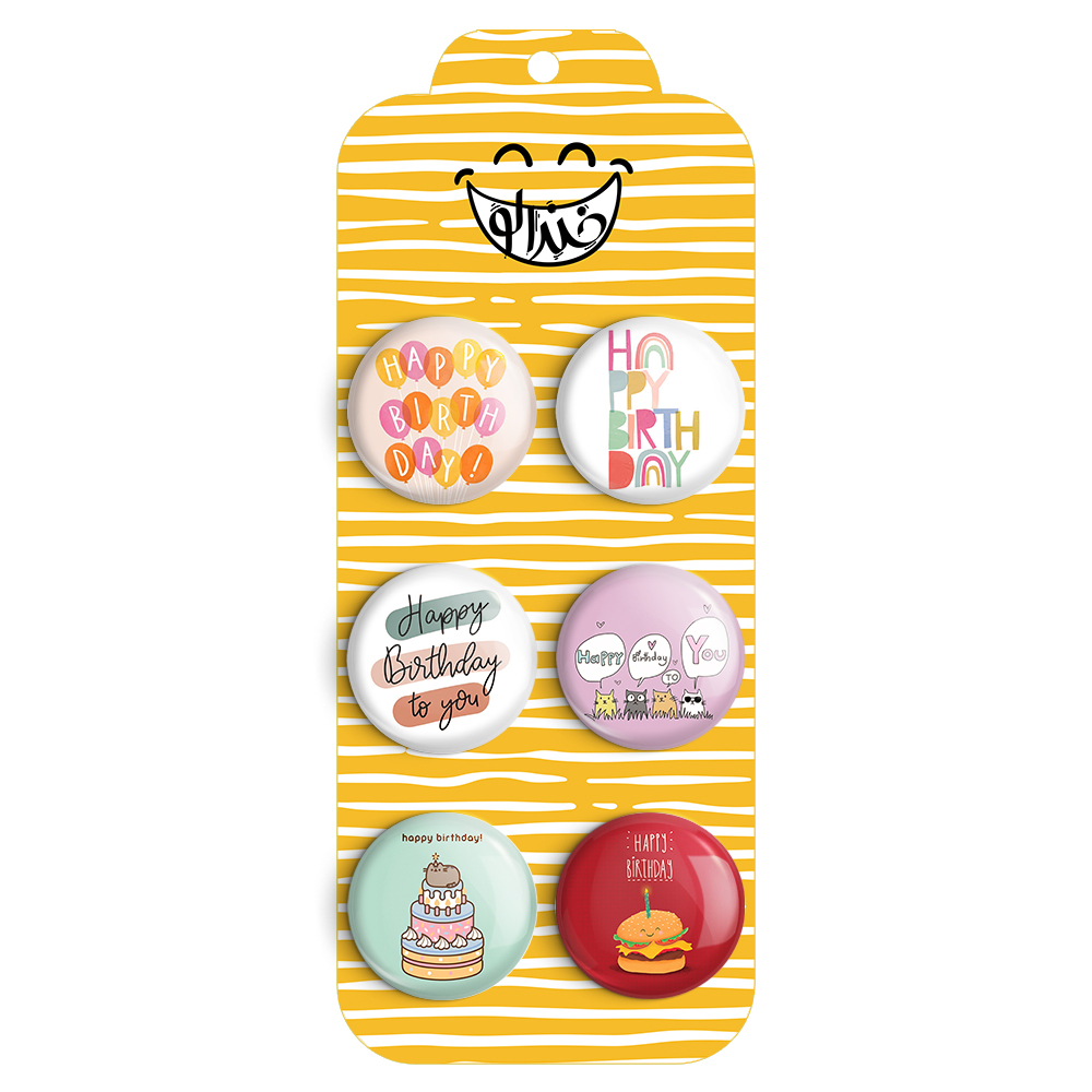 مجموعه 6 عددی پیکسل خندالو طرح تولد با روکش سلفون حرارتی براق ضدخش و قطعه پشتی رنگی تولید شده است. قطعات پشتی از میان 6 رنگ سفید، مشکی، صورتی، زرد، آبی و قرمز که با توجه به نوع و رنگبندی طرح روی پیکسل انتخاب شده اند تولید می شود و در هر بسته بندی مطابق عکس محصول می باشد. قطعات پلاستیکی پشت پیکسل با سوزن یک تکه ثابت و بدون لغزش و جا به جایی، ایستایی بسیار بهتری نسبت به پشتی فلزی پیکسل دارند که این مهم در تولید این محصول نیز رعایت شده است. چاپ پیکسل نیز با دستگاه های استاندارد و با بهترین سطح کیفی صورت گرفته و طرح با شفافیتی مثال زدنی و با سلفونی بدون شکست نور بر روی پیکسل نقش بسته است. همچنین بسته بندی جذاب و مینیمال پیکسل ها، آنها را مناسب هدیه کرده است..