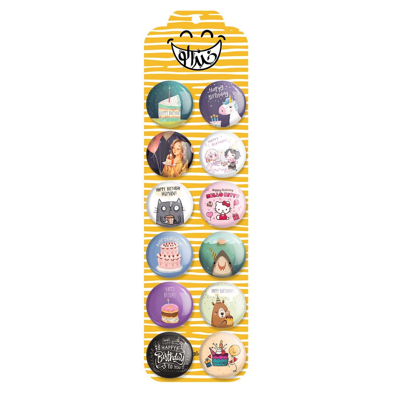 پک 12 عددی پیکسل خندالو طرح تولد با روکش سلفون حرارتی براق ضدخش و قطعه پشتی رنگی تولید شده است. قطعات پشتی از میان 6 رنگ سفید، مشکی، صورتی، زرد، آبی و قرمز که با توجه به نوع و رنگبندی طرح روی پیکسل انتخاب شده اند تولید می شود و در هر بسته بندی مطابق عکس محصول می باشد. قطعات پلاستیکی پشت پیکسل با سوزن یک تکه ثابت و بدون لغزش و جا به جایی، ایستایی بسیار بهتری نسبت به پشتی فلزی پیکسل دارند که این مهم در تولید این محصول نیز رعایت شده است.