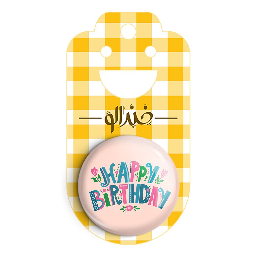 پیکسل 44 میلی متری تولد خندالو با روکش سلفون حرارتی مات مخملی ضدخش و قطعه پشتی رنگی تولید شده است.پلاستیکی پشت پیکسل با سوزن یک تکه ثابت و بدون لغزش و جا به جایی، ایستایی بسیار بهتری نسبت به پشتی فلزی پیکسل دارند که این مهم در تولید این محصول نیز رعایت شده است.