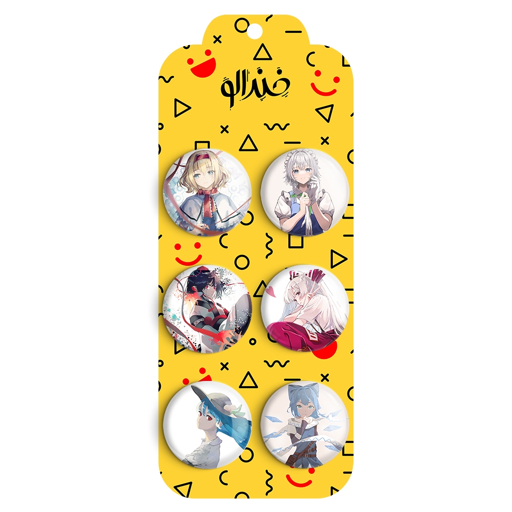 مجموعه 6 عددی پیکسل خندالو طرح توهو (Touhou) با روکش سلفون حرارتی براق ضدخش و قطعه پشتی رنگی تولید شده است. قطعات پشتی از میان 6 رنگ سفید، مشکی، صورتی، زرد، آبی و قرمز که با توجه به نوع و رنگبندی طرح روی پیکسل انتخاب شده اند تولید می شود و در هر بسته بندی مطابق عکس محصول می باشد.