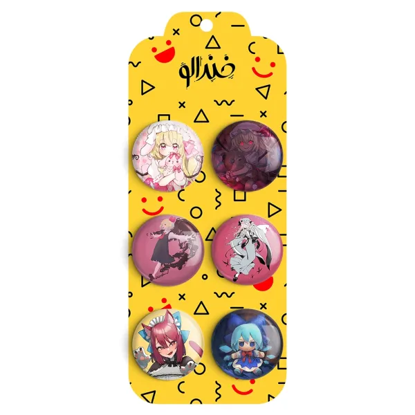 مجموعه 6 عددی پیکسل خندالو طرح توهو (Touhou) با روکش سلفون حرارتی براق ضدخش و قطعه پشتی رنگی تولید شده است. قطعات پشتی از میان 6 رنگ سفید، مشکی، صورتی، زرد، آبی و قرمز که با توجه به نوع و رنگبندی طرح روی پیکسل انتخاب شده اند تولید می شود و در هر بسته بندی مطابق عکس محصول می باشد.