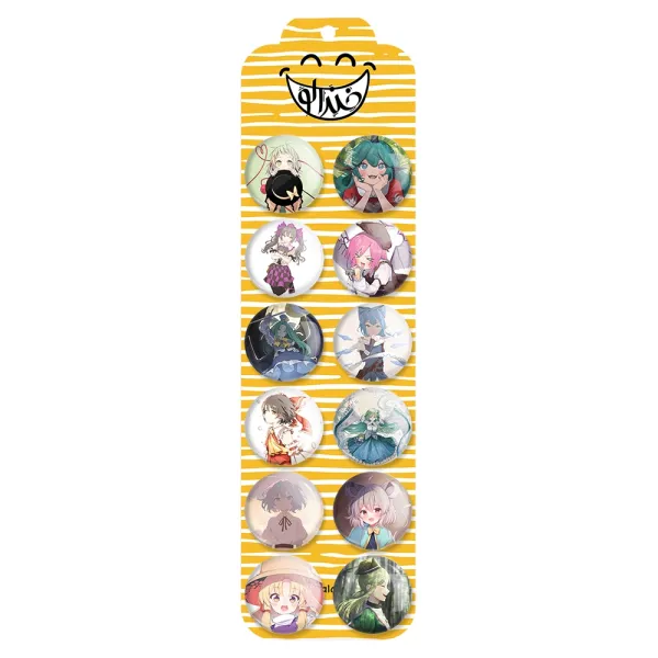 پک 12 عددی پیکسل خندالو طرح توهو (Touhou) با روکش سلفون حرارتی براق ضدخش و قطعه پشتی رنگی تولید شده است. قطعات پشتی از میان 6 رنگ سفید، مشکی، صورتی، زرد، آبی و قرمز که با توجه به نوع و رنگبندی طرح روی پیکسل انتخاب شده اند تولید می شود و در هر بسته بندی مطابق عکس محصول می باشد. قطعات پلاستیکی پشت پیکسل با سوزن یک تکه ثابت و بدون لغزش و جا به جایی، ایستایی بسیار بهتری نسبت به پشتی فلزی پیکسل دارند که این مهم در تولید این محصول نیز رعایت شده است.