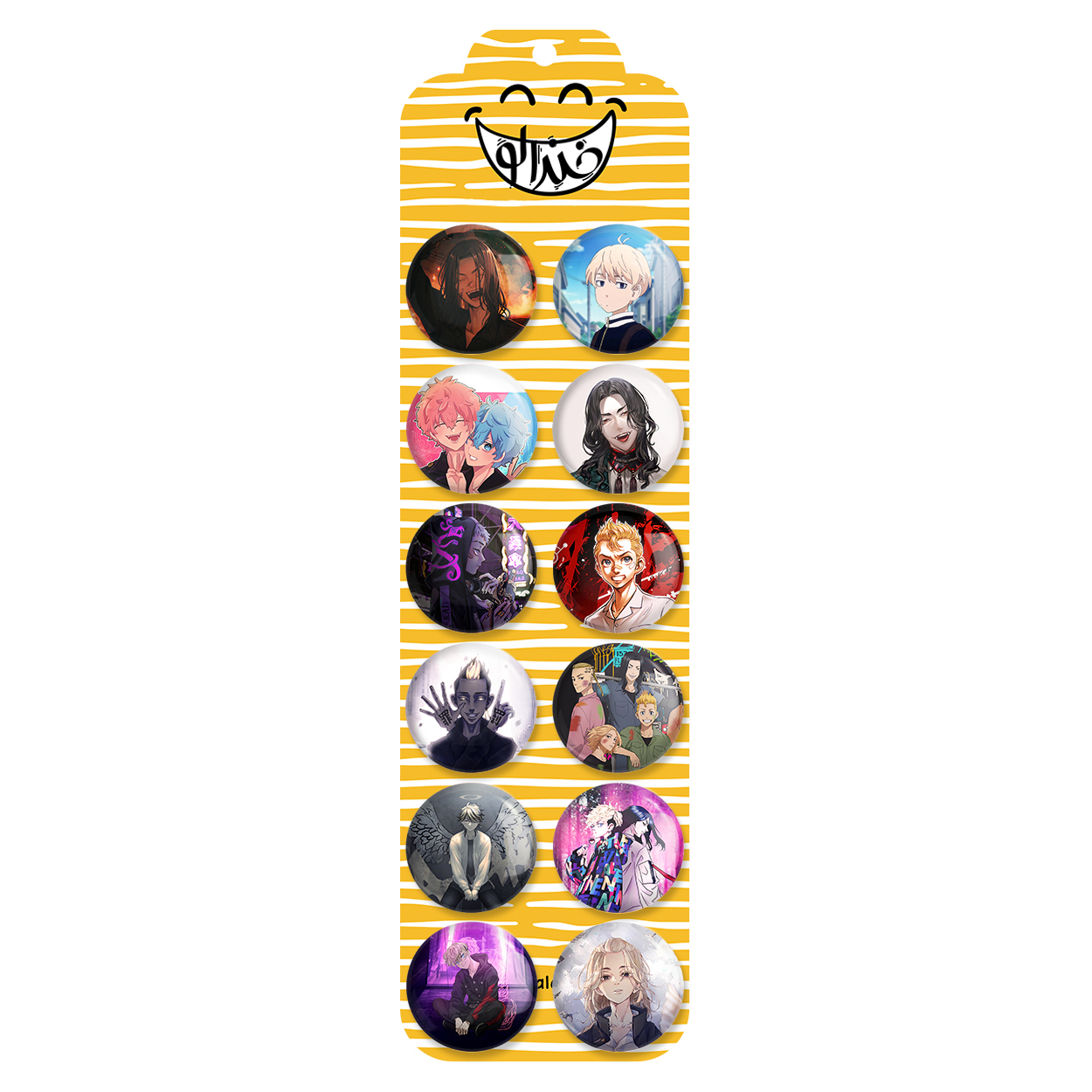 پک 12 عددی پیکسل خندالو طرح توکیو ریونجرز (Tokyo Revengers) با روکش سلفون حرارتی براق ضدخش و قطعه پشتی رنگی تولید شده است. قطعات پشتی از میان 6 رنگ سفید، مشکی، صورتی، زرد، آبی و قرمز که با توجه به نوع و رنگبندی طرح روی پیکسل انتخاب شده اند تولید می شود و در هر بسته بندی مطابق عکس محصول می باشد. قطعات پلاستیکی پشت پیکسل با سوزن یک تکه ثابت و بدون لغزش و جا به جایی، ایستایی بسیار بهتری نسبت به پشتی فلزی پیکسل دارند که این مهم در تولید این محصول نیز رعایت شده است. چاپ پیکسل طرح توکیو ریونجرز (Tokyo Revengers) بسته ۱۲ عددی نیز با دستگاه های استاندارد و با بهترین سطح کیفی صورت گرفته و طرح با شفافیتی مثال زدنی و با سلفونی بدون شکست نور بر روی پیکسل نقش بسته است.