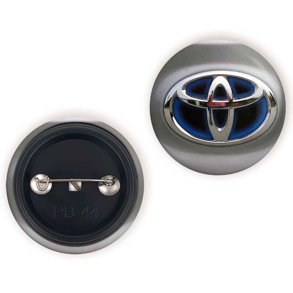 پیکسل 44 میلی متری تویوتا Toyota خندالو با روکش سلفون حرارتی مات مخملی ضدخش و قطعه پشتی رنگی تولید شده است.پلاستیکی پشت پیکسل با سوزن یک تکه ثابت و بدون لغزش و جا به جایی، ایستایی بسیار بهتری نسبت به پشتی فلزی پیکسل دارند که این مهم در تولید این محصول نیز رعایت شده است.