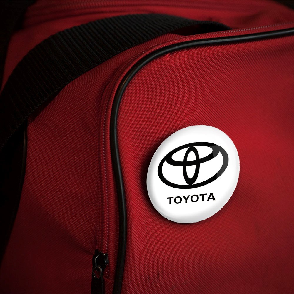 پیکسل 44 میلی متری تویوتا Toyota خندالو با روکش سلفون حرارتی مات مخملی ضدخش و قطعه پشتی رنگی تولید شده است.پلاستیکی پشت پیکسل با سوزن یک تکه ثابت و بدون لغزش و جا به جایی، ایستایی بسیار بهتری نسبت به پشتی فلزی پیکسل دارند که این مهم در تولید این محصول نیز رعایت شده است.