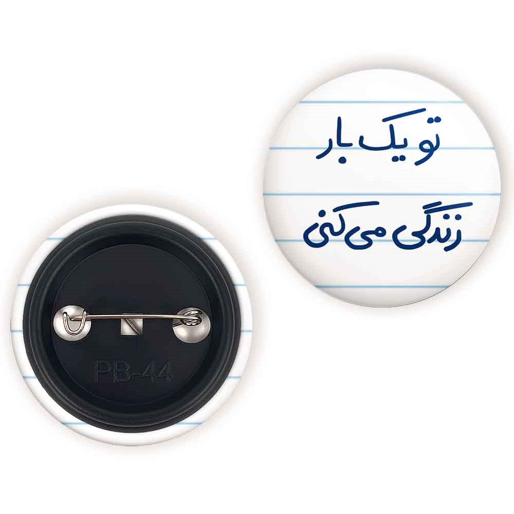پیکسل 44 میلی متری تو یکبار زندگی می کنی خندالو با روکش سلفون حرارتی مات مخملی ضدخش و قطعه پشتی رنگی تولید شده است. قطعات پلاستیکی پشت پیکسل با سوزن یک تکه ثابت و بدون لغزش و جا به جایی، ایستایی بسیار بهتری نسبت به پشتی فلزی پیکسل دارند که این مهم در تولید این محصول نیز رعایت شده است. چاپ پیکسل تو یکبار زندگی می کنی نیز با دستگاه های استاندارد و با بهترین سطح کیفی صورت گرفته و طرح با شفافیتی مثال زدنی و با سلفونی بدون شکست نور بر روی پیکسل نقش بسته است. همچنین بسته بندی جذاب و مینیمال پیکسل تو یکبار زندگی می کنی ، آنها را مناسب هدیه کرده است.