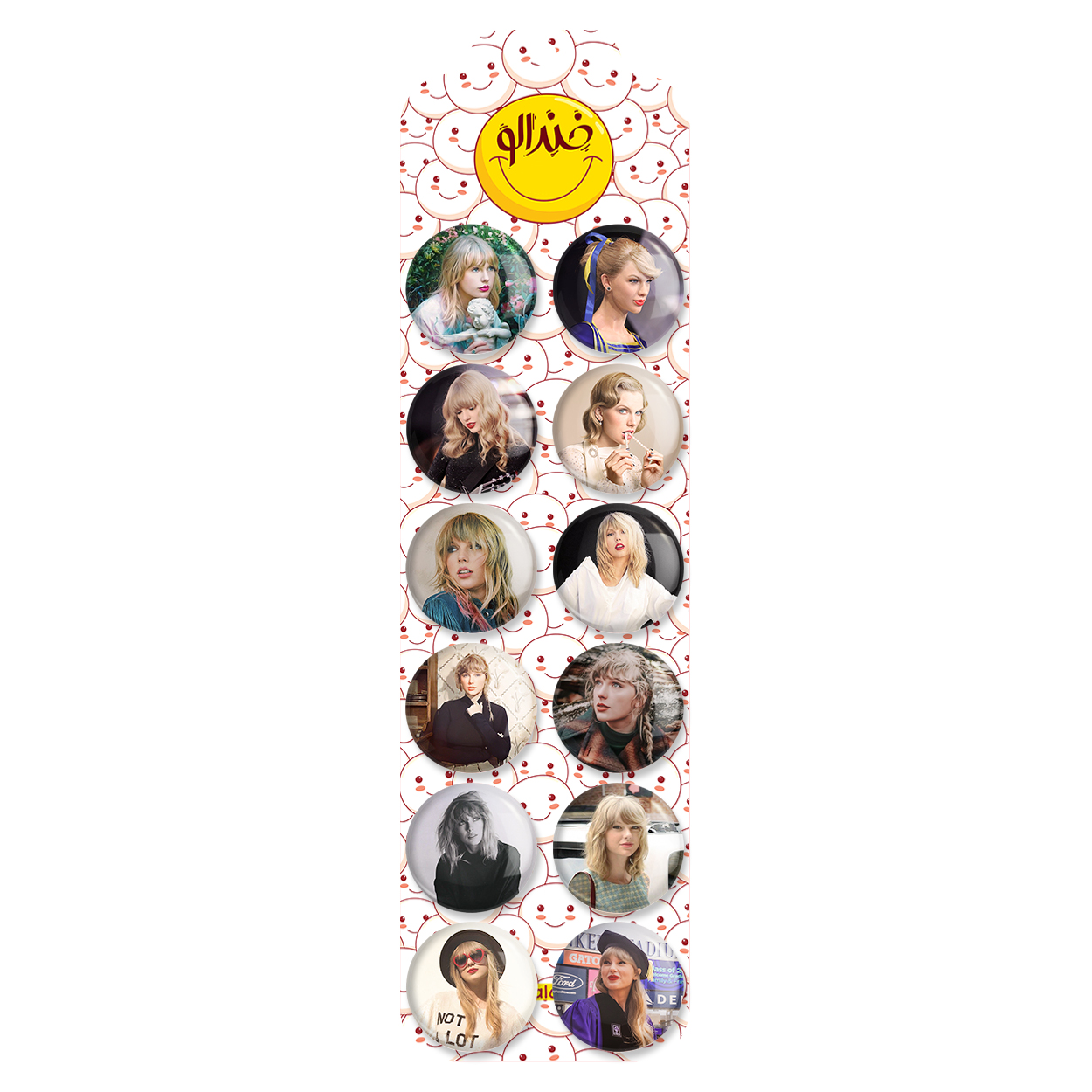 پک 12 عددی پیکسل خندالو طرح تیلور سوئیفت (Taylor Swift) با روکش سلفون حرارتی براق ضدخش و قطعه پشتی رنگی تولید شده است. قطعات پشتی از میان 6 رنگ سفید، مشکی، صورتی، زرد، آبی و قرمز که با توجه به نوع و رنگبندی طرح روی پیکسل انتخاب شده اند تولید می شود و در هر بسته بندی مطابق عکس محصول می باشد. قطعات پلاستیکی پشت پیکسل با سوزن یک تکه ثابت و بدون لغزش و جا به جایی، ایستایی بسیار بهتری نسبت به پشتی فلزی پیکسل دارند که این مهم در تولید این محصول نیز رعایت شده است. چاپ پیکسل طرح تیلور سوئیفت (Taylor Swift) بسته ۱۲ عددی نیز با دستگاه های استاندارد و با بهترین سطح کیفی صورت گرفته و طرح با شفافیتی مثال زدنی و با سلفونی بدون شکست نور بر روی پیکسل نقش بسته است.