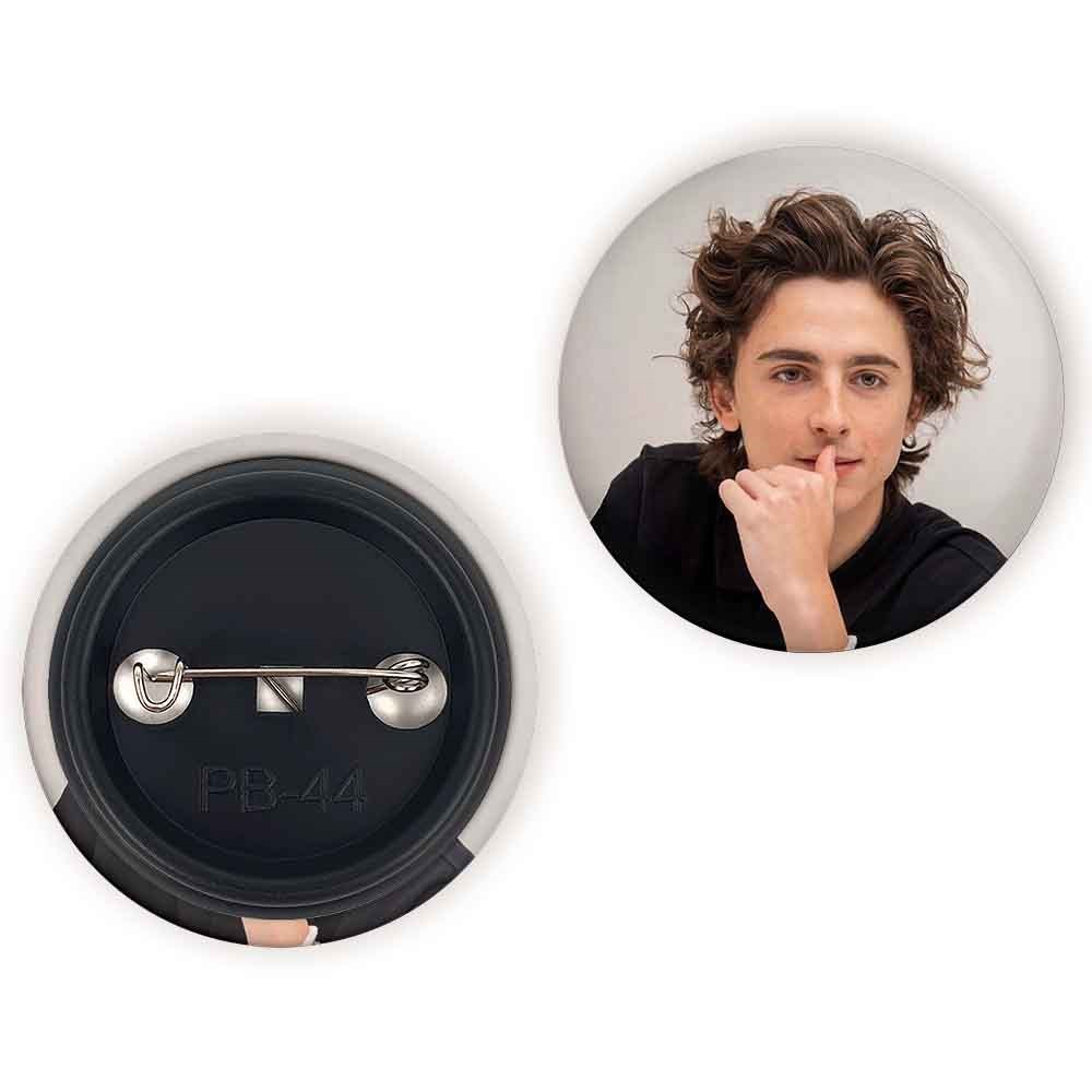 پیکسل 44 میلی متری تیموتی شالامی Timothée Chalamet خندالو با روکش سلفون حرارتی مات مخملی ضدخش و قطعه پشتی رنگی تولید شده است.پلاستیکی پشت پیکسل با سوزن یک تکه ثابت و بدون لغزش و جا به جایی، ایستایی بسیار بهتری نسبت به پشتی فلزی پیکسل دارند که این مهم در تولید این محصول نیز رعایت شده است.