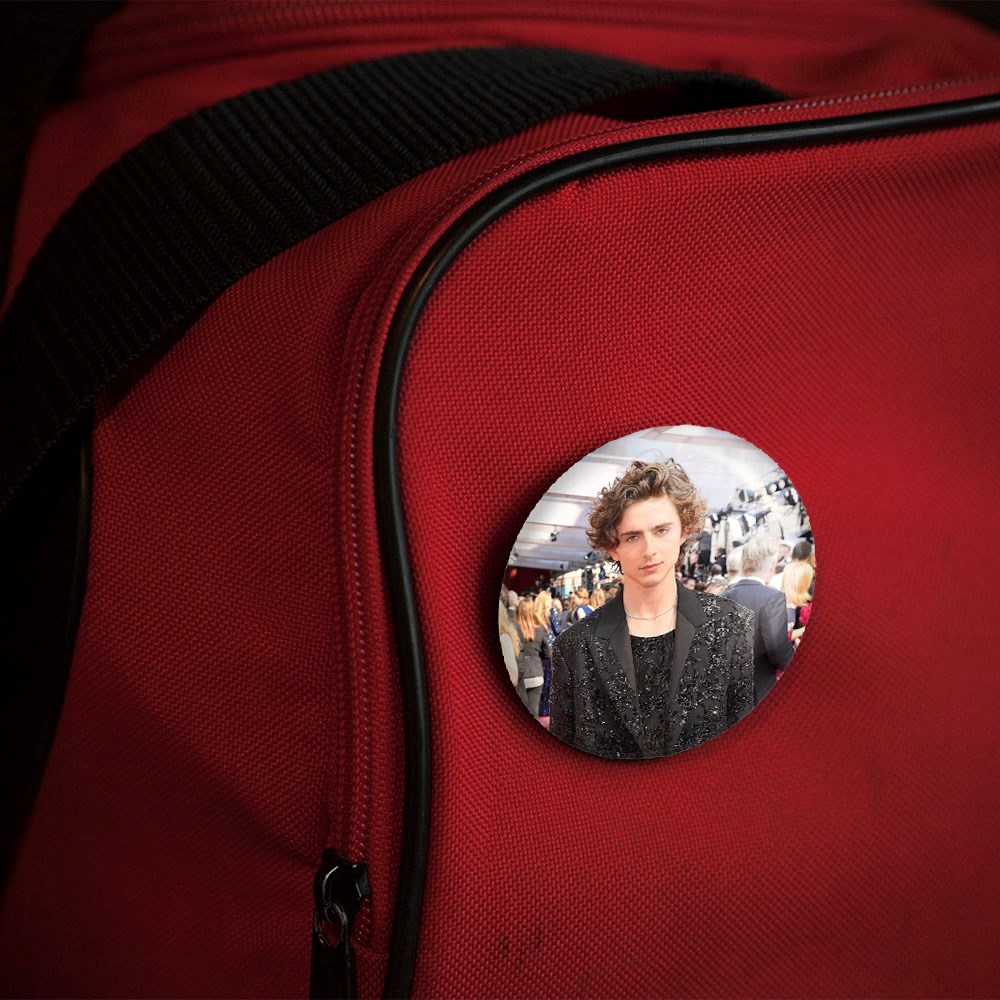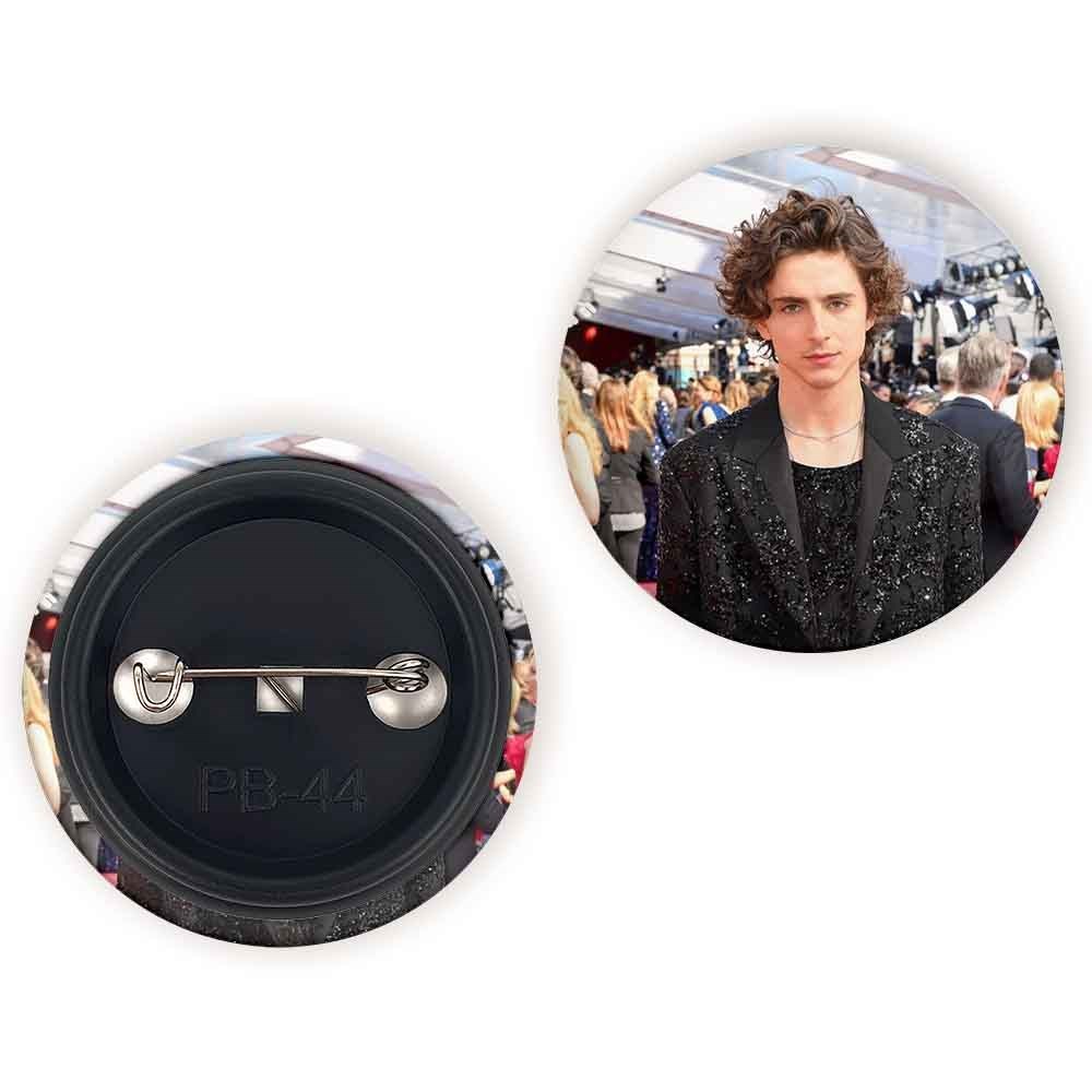 پیکسل 44 میلی متری تیموتی شالامی Timothée Chalamet خندالو با روکش سلفون حرارتی مات مخملی ضدخش و قطعه پشتی رنگی تولید شده است.پلاستیکی پشت پیکسل با سوزن یک تکه ثابت و بدون لغزش و جا به جایی، ایستایی بسیار بهتری نسبت به پشتی فلزی پیکسل دارند که این مهم در تولید این محصول نیز رعایت شده است.