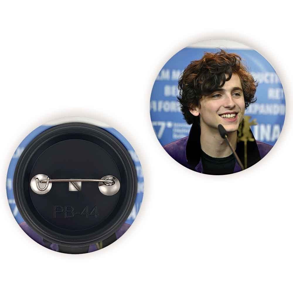 پیکسل 44 میلی متری تیموتی شالامی Timothée Chalamet خندالو با روکش سلفون حرارتی مات مخملی ضدخش و قطعه پشتی رنگی تولید شده است.پلاستیکی پشت پیکسل با سوزن یک تکه ثابت و بدون لغزش و جا به جایی، ایستایی بسیار بهتری نسبت به پشتی فلزی پیکسل دارند که این مهم در تولید این محصول نیز رعایت شده است.