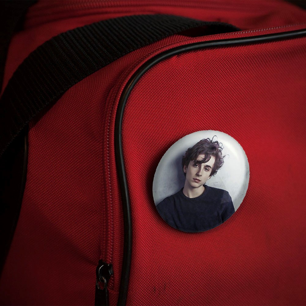 پیکسل 44 میلی متری تیموتی شالامی Timothée Chalamet خندالو با روکش سلفون حرارتی مات مخملی ضدخش و قطعه پشتی رنگی تولید شده است.پلاستیکی پشت پیکسل با سوزن یک تکه ثابت و بدون لغزش و جا به جایی، ایستایی بسیار بهتری نسبت به پشتی فلزی پیکسل دارند که این مهم در تولید این محصول نیز رعایت شده است.