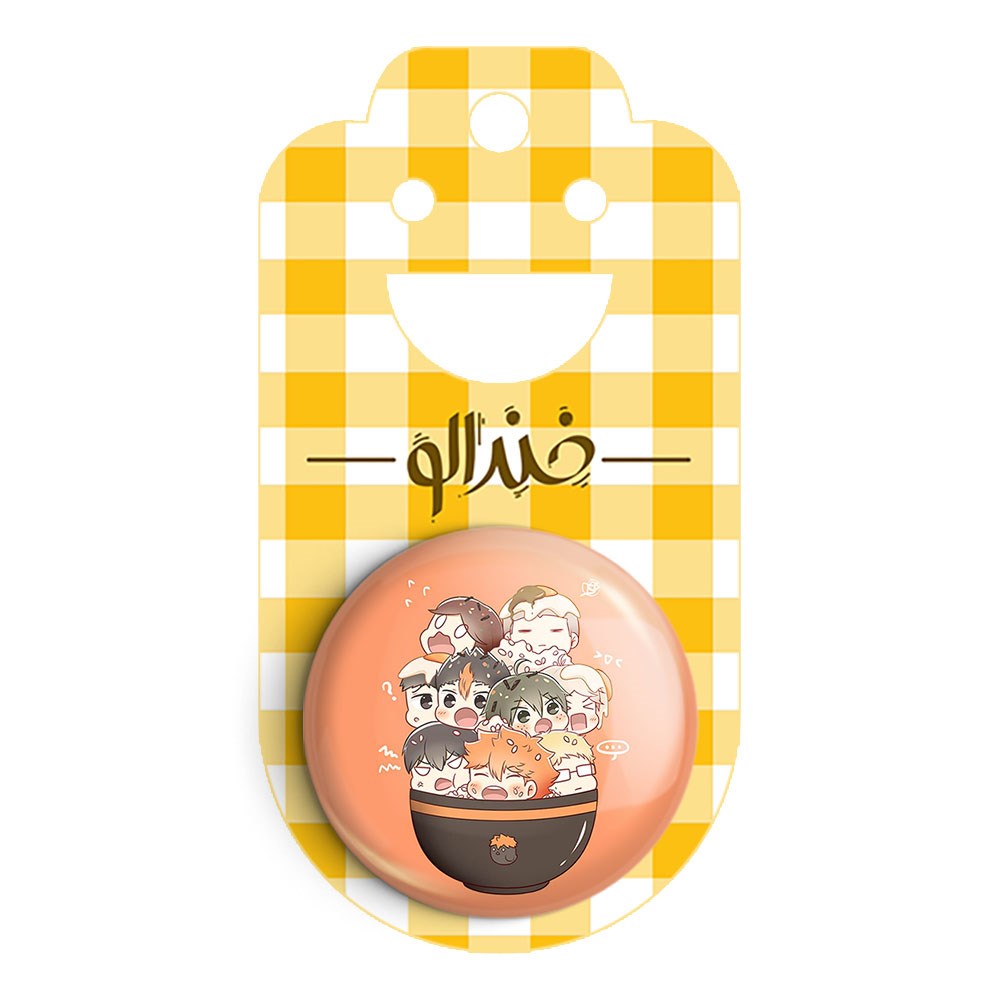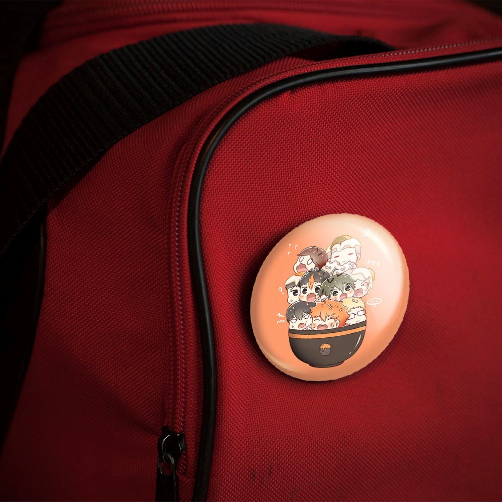 پیکسل 44 میلی متری تیم کاراسونو انیمه هایکیو Haikyu خندالو با روکش سلفون حرارتی مات مخملی ضدخش و قطعه پشتی رنگی تولید شده است.پلاستیکی پشت پیکسل با سوزن یک تکه ثابت و بدون لغزش و جا به جایی، ایستایی بسیار بهتری نسبت به پشتی فلزی پیکسل دارند که این مهم در تولید این محصول نیز رعایت شده است.