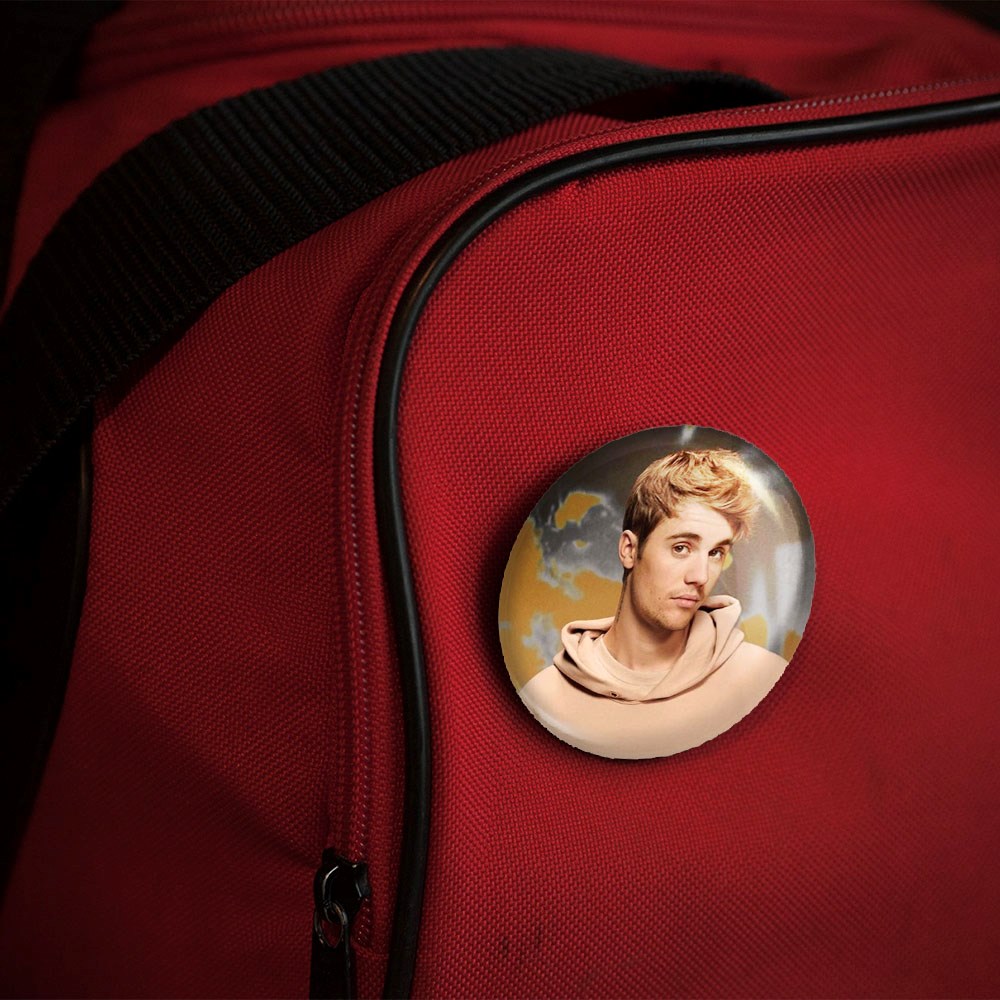 پیکسل 44 میلی متری جاستین بیبر Justin Bieber خندالو با روکش سلفون حرارتی مات مخملی ضدخش و قطعه پشتی رنگی تولید شده است.پلاستیکی پشت پیکسل با سوزن یک تکه ثابت و بدون لغزش و جا به جایی، ایستایی بسیار بهتری نسبت به پشتی فلزی پیکسل دارند که این مهم در تولید این محصول نیز رعایت شده است.