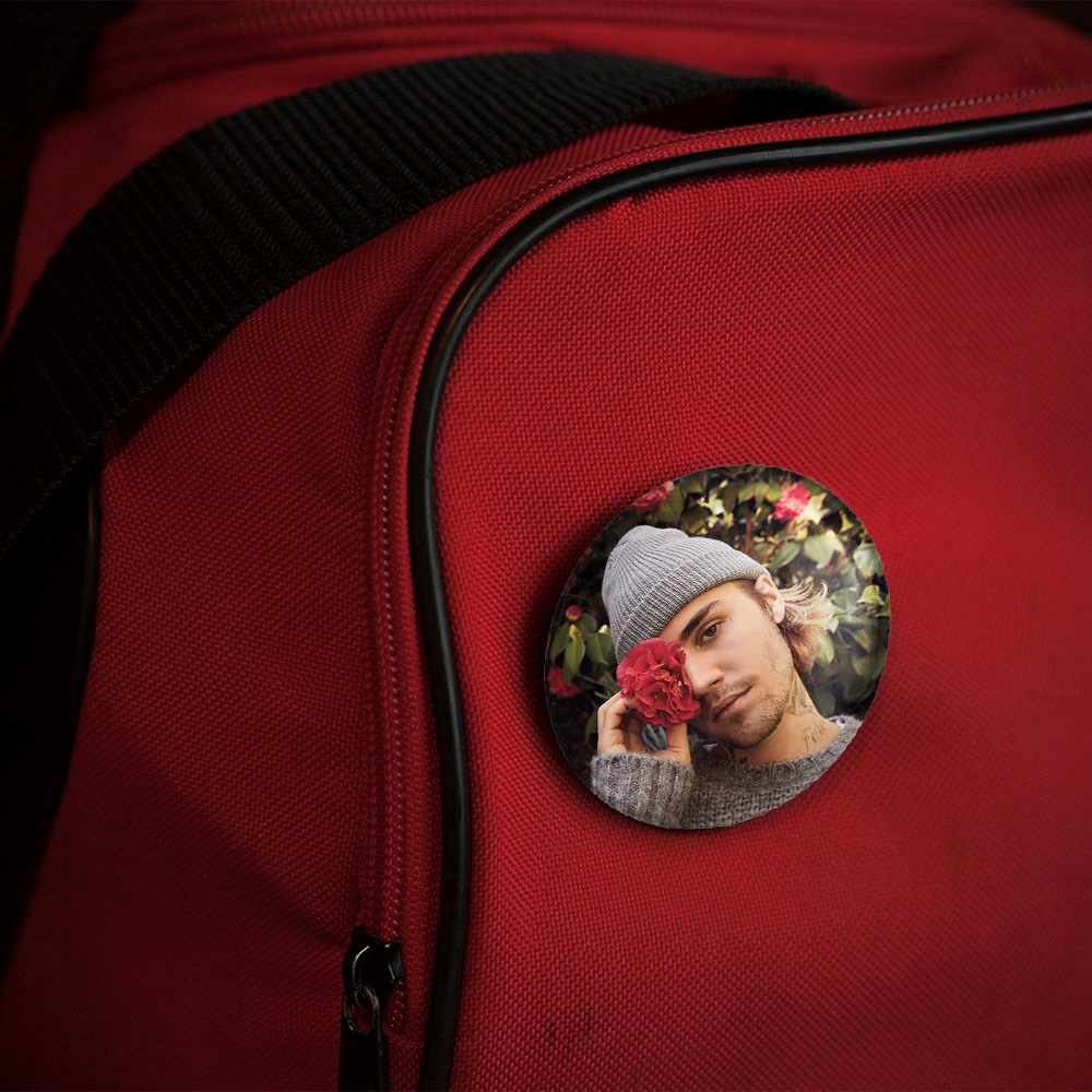 پیکسل 44 میلی متری جاستین بیبر Justin Bieber خندالو با روکش سلفون حرارتی مات مخملی ضدخش و قطعه پشتی رنگی تولید شده است.پلاستیکی پشت پیکسل با سوزن یک تکه ثابت و بدون لغزش و جا به جایی، ایستایی بسیار بهتری نسبت به پشتی فلزی پیکسل دارند که این مهم در تولید این محصول نیز رعایت شده است.
