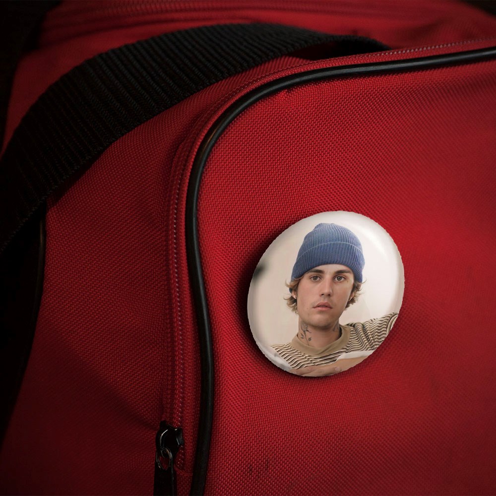 پیکسل 44 میلی متری جاستین بیبر Justin Bieber خندالو با روکش سلفون حرارتی مات مخملی ضدخش و قطعه پشتی رنگی تولید شده است.پلاستیکی پشت پیکسل با سوزن یک تکه ثابت و بدون لغزش و جا به جایی، ایستایی بسیار بهتری نسبت به پشتی فلزی پیکسل دارند که این مهم در تولید این محصول نیز رعایت شده است.