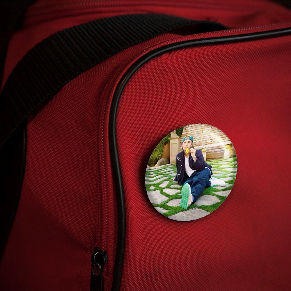 پیکسل 44 میلی متری جاستین بیبر Justin Bieber خندالو با روکش سلفون حرارتی مات مخملی ضدخش و قطعه پشتی رنگی تولید شده است.پلاستیکی پشت پیکسل با سوزن یک تکه ثابت و بدون لغزش و جا به جایی، ایستایی بسیار بهتری نسبت به پشتی فلزی پیکسل دارند که این مهم در تولید این محصول نیز رعایت شده است.