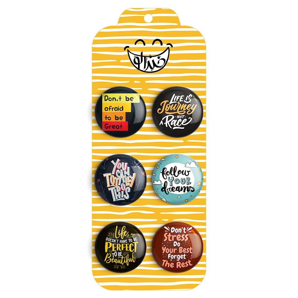 مجموعه 6 عددی پیکسل خندالو طرح جملات انگیزشی با روکش سلفون حرارتی براق ضدخش و قطعه پشتی رنگی تولید شده است. قطعات پشتی از میان 6 رنگ سفید، مشکی، صورتی، زرد، آبی و قرمز که با توجه به نوع و رنگبندی طرح روی پیکسل انتخاب شده اند تولید می شود و در هر بسته بندی مطابق عکس محصول می باشد.