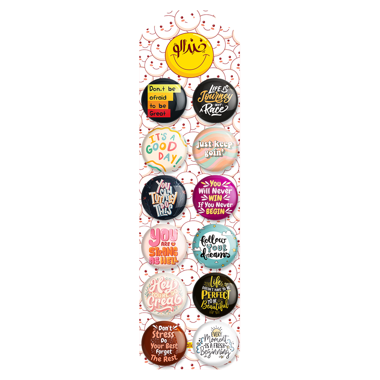 پک 12 عددی پیکسل خندالو طرح جملات انگیزشی با روکش سلفون حرارتی براق ضدخش و قطعه پشتی رنگی تولید شده است. قطعات پشتی از میان 6 رنگ سفید، مشکی، صورتی، زرد، آبی و قرمز که با توجه به نوع و رنگبندی طرح روی پیکسل انتخاب شده اند تولید می شود و در هر بسته بندی مطابق عکس محصول می باشد. قطعات پلاستیکی پشت پیکسل با سوزن یک تکه ثابت و بدون لغزش و جا به جایی، ایستایی بسیار بهتری نسبت به پشتی فلزی پیکسل دارند که این مهم در تولید این محصول نیز رعایت شده است.