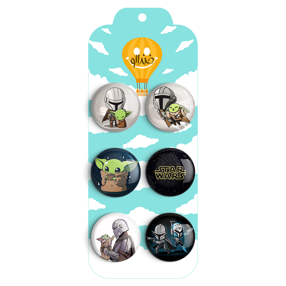 مجموعه 6 عددی پیکسل خندالو طرح جنگ ستارگان با روکش سلفون حرارتی براق ضدخش و قطعه پشتی رنگی تولید شده است. قطعات پشتی از میان 6 رنگ سفید، مشکی، صورتی، زرد، آبی و قرمز که با توجه به نوع و رنگبندی طرح روی پیکسل انتخاب شده اند تولید می شود و در هر بسته بندی مطابق عکس محصول می باشد.