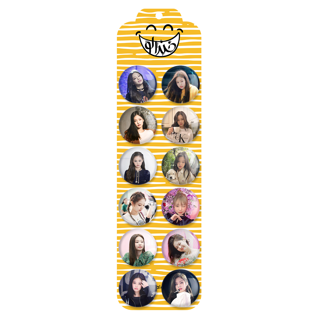 پک 12 عددی پیکسل خندالو طرح جنی بلک پینک Black pink با روکش سلفون حرارتی براق ضدخش و قطعه پشتی رنگی تولید شده است. قطعات پشتی از میان 6 رنگ سفید، مشکی، صورتی، زرد، آبی و قرمز که با توجه به نوع و رنگبندی طرح روی پیکسل انتخاب شده اند تولید می شود و در هر بسته بندی مطابق عکس محصول می باشد. قطعات پلاستیکی پشت پیکسل با سوزن یک تکه ثابت و بدون لغزش و جا به جایی، ایستایی بسیار بهتری نسبت به پشتی فلزی پیکسل دارند که این مهم در تولید این محصول نیز رعایت شده است.