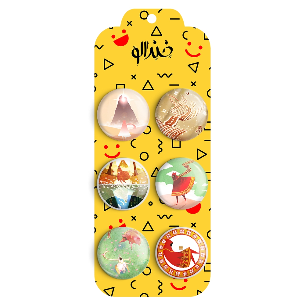 مجموعه 6 عددی پیکسل خندالو طرح جورنی (Journey) با روکش سلفون حرارتی براق ضدخش و قطعه پشتی رنگی تولید شده است. قطعات پشتی از میان 6 رنگ سفید، مشکی، صورتی، زرد، آبی و قرمز که با توجه به نوع و رنگبندی طرح روی پیکسل انتخاب شده اند تولید می شود و در هر بسته بندی مطابق عکس محصول می باشد.