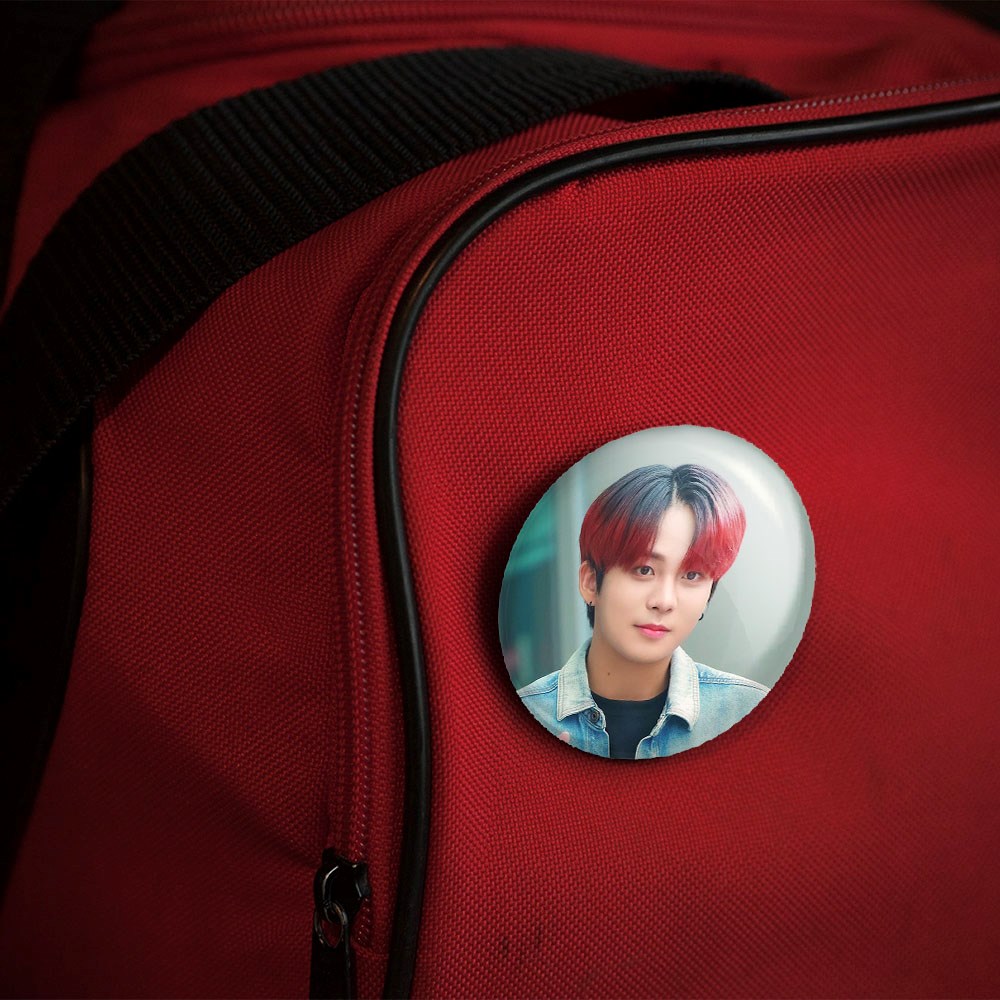 پیکسل 44 میلی متری جونگهو گروه ایتیز ATEEZ خندالو با روکش سلفون حرارتی مات مخملی ضدخش و قطعه پشتی رنگی تولید شده است.پلاستیکی پشت پیکسل با سوزن یک تکه ثابت و بدون لغزش و جا به جایی، ایستایی بسیار بهتری نسبت به پشتی فلزی پیکسل دارند که این مهم در تولید این محصول نیز رعایت شده است.