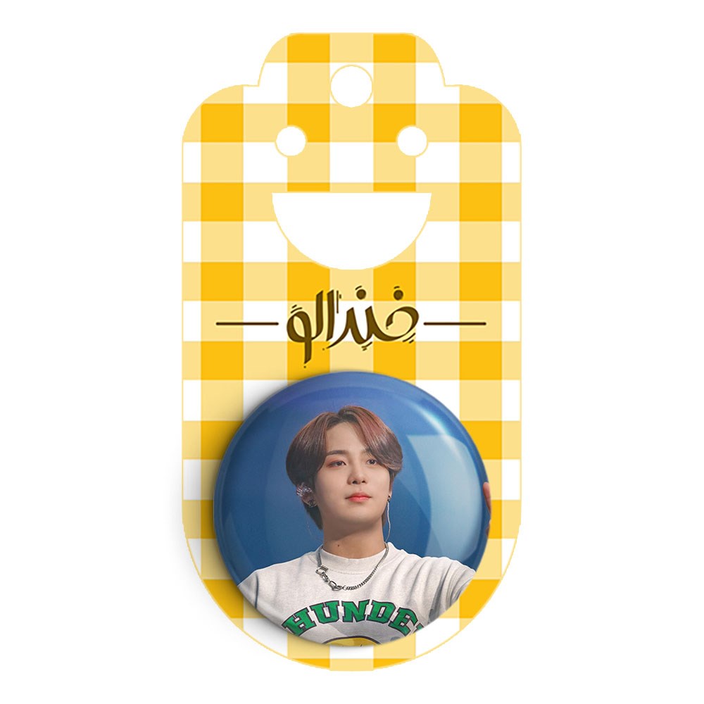 پیکسل 44 میلی متری جونگهو گروه ایتیز ATEEZ خندالو با روکش سلفون حرارتی مات مخملی ضدخش و قطعه پشتی رنگی تولید شده است.پلاستیکی پشت پیکسل با سوزن یک تکه ثابت و بدون لغزش و جا به جایی، ایستایی بسیار بهتری نسبت به پشتی فلزی پیکسل دارند که این مهم در تولید این محصول نیز رعایت شده است.