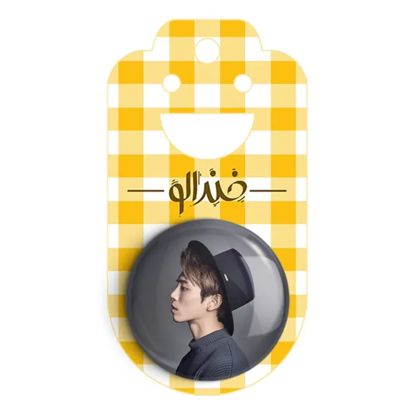 پیکسل 44 میلی متری جونگهیون گروه شاینی Shinee خندالو با روکش سلفون حرارتی مات مخملی ضدخش و قطعه پشتی رنگی تولید شده است.پلاستیکی پشت پیکسل با سوزن یک تکه ثابت و بدون لغزش و جا به جایی، ایستایی بسیار بهتری نسبت به پشتی فلزی پیکسل دارند که این مهم در تولید این محصول نیز رعایت شده است.