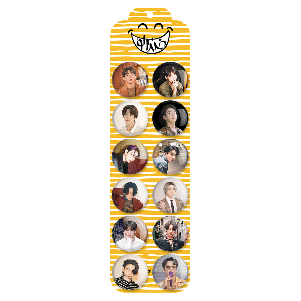 پک 12 عددی پیکسل خندالو طرح جونگ‌کوک (Jungkook) بی تی اس BTS با روکش سلفون حرارتی براق ضدخش و قطعه پشتی رنگی تولید شده است. قطعات پشتی از میان 6 رنگ سفید، مشکی، صورتی، زرد، آبی و قرمز که با توجه به نوع و رنگبندی طرح روی پیکسل انتخاب شده اند تولید می شود و در هر بسته بندی مطابق عکس محصول می باشد. قطعات پلاستیکی پشت پیکسل با سوزن یک تکه ثابت و بدون لغزش و جا به جایی، ایستایی بسیار بهتری نسبت به پشتی فلزی پیکسل دارند که این مهم در تولید این محصول نیز رعایت شده است.