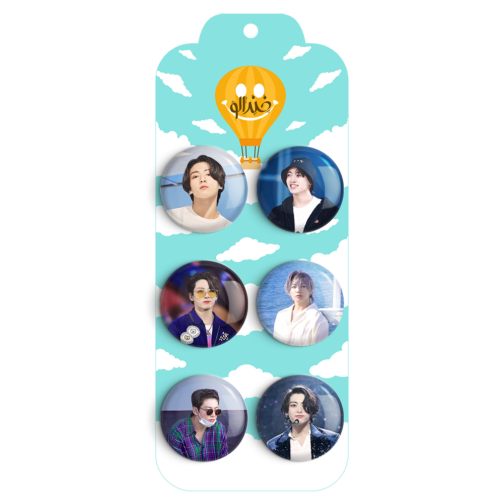 مجموعه 6 عددی پیکسل خندالو طرح جونگ‌کوک (Jungkook) گروه BTS با روکش سلفون حرارتی براق ضدخش و قطعه پشتی رنگی تولید شده است. قطعات پشتی از میان 6 رنگ سفید، مشکی، صورتی، زرد، آبی و قرمز که با توجه به نوع و رنگبندی طرح روی پیکسل انتخاب شده اند تولید می شود و در هر بسته بندی مطابق عکس محصول می باشد.