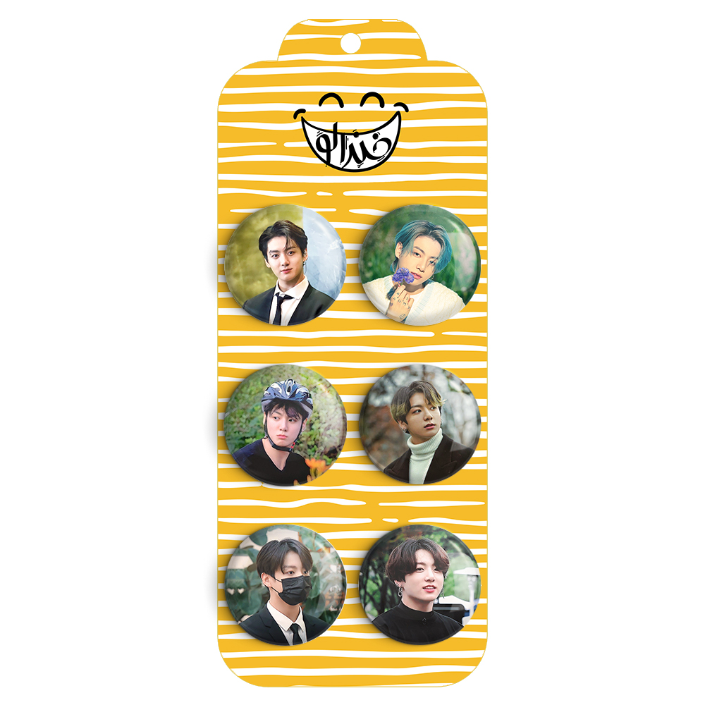 مجموعه 6 عددی پیکسل خندالو طرح جونگ‌کوک (Jungkook) گروه BTS با روکش سلفون حرارتی براق ضدخش و قطعه پشتی رنگی تولید شده است. قطعات پشتی از میان 6 رنگ سفید، مشکی، صورتی، زرد، آبی و قرمز که با توجه به نوع و رنگبندی طرح روی پیکسل انتخاب شده اند تولید می شود و در هر بسته بندی مطابق عکس محصول می باشد.