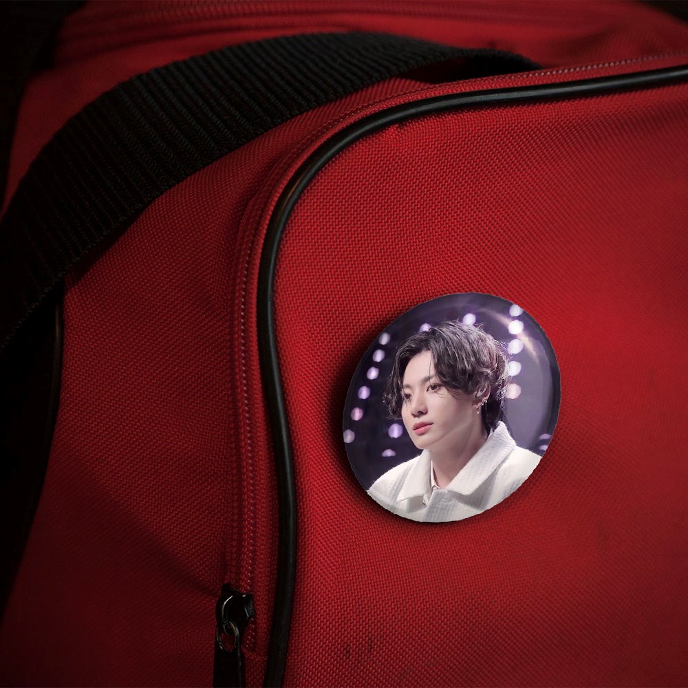 پیکسل 44 میلی متری جونگ کوک Jung Kook گروه بی تی اس BTS خندالو با روکش سلفون حرارتی مات مخملی ضدخش و قطعه پشتی رنگی تولید شده است.پلاستیکی پشت پیکسل با سوزن یک تکه ثابت و بدون لغزش و جا به جایی، ایستایی بسیار بهتری نسبت به پشتی فلزی پیکسل دارند که این مهم در تولید این محصول نیز رعایت شده است.