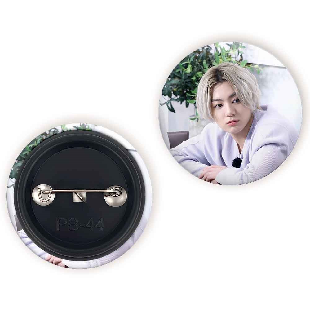 پیکسل 44 میلی متری جونگ کوک Jung Kook گروه بی تی اس BTS خندالو با روکش سلفون حرارتی مات مخملی ضدخش و قطعه پشتی رنگی تولید شده است.پلاستیکی پشت پیکسل با سوزن یک تکه ثابت و بدون لغزش و جا به جایی، ایستایی بسیار بهتری نسبت به پشتی فلزی پیکسل دارند که این مهم در تولید این محصول نیز رعایت شده است.