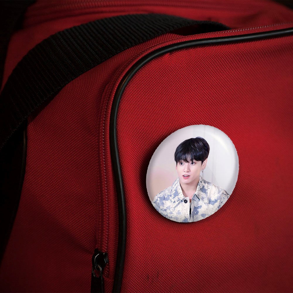 پیکسل 44 میلی متری جونگ کوک Jung Kook گروه بی تی اس BTS خندالو با روکش سلفون حرارتی مات مخملی ضدخش و قطعه پشتی رنگی تولید شده است.پلاستیکی پشت پیکسل با سوزن یک تکه ثابت و بدون لغزش و جا به جایی، ایستایی بسیار بهتری نسبت به پشتی فلزی پیکسل دارند که این مهم در تولید این محصول نیز رعایت شده است.