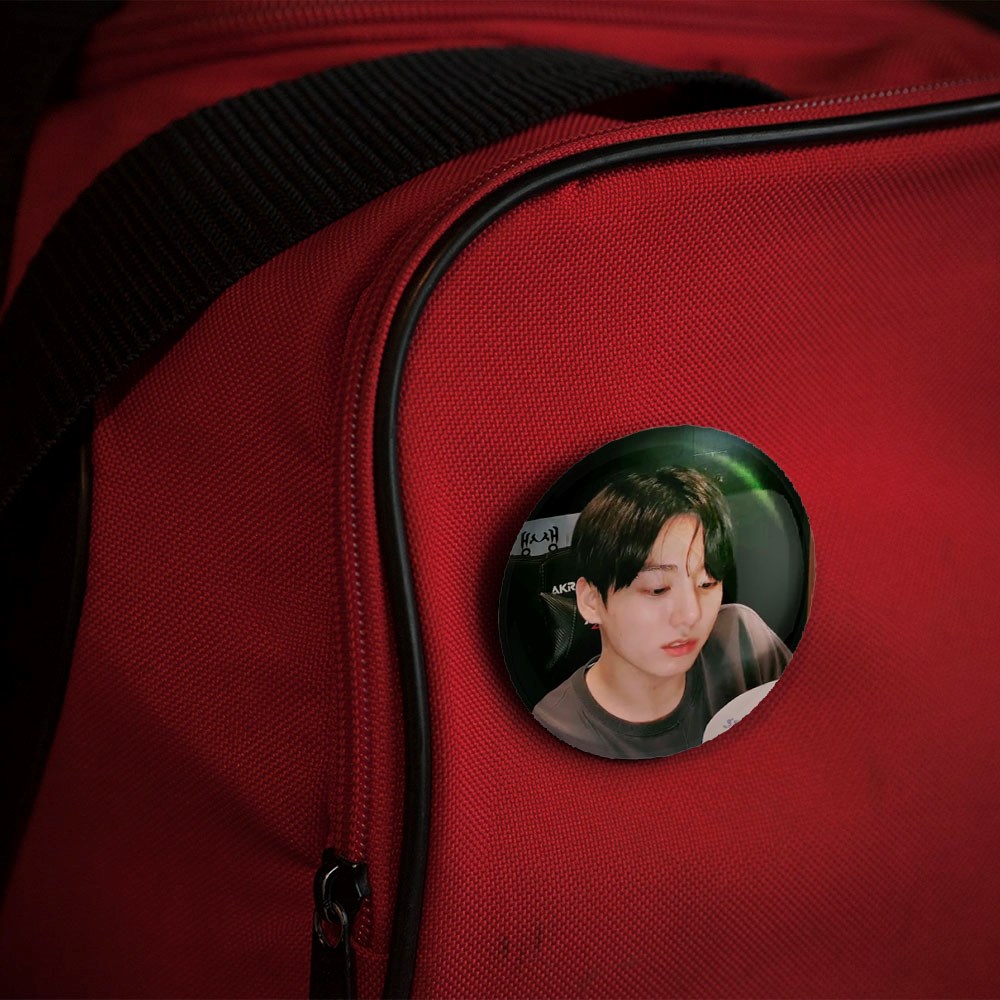 پیکسل 44 میلی متری جونگ کوک Jung Kook گروه بی تی اس BTS خندالو با روکش سلفون حرارتی مات مخملی ضدخش و قطعه پشتی رنگی تولید شده است.پلاستیکی پشت پیکسل با سوزن یک تکه ثابت و بدون لغزش و جا به جایی، ایستایی بسیار بهتری نسبت به پشتی فلزی پیکسل دارند که این مهم در تولید این محصول نیز رعایت شده است.
