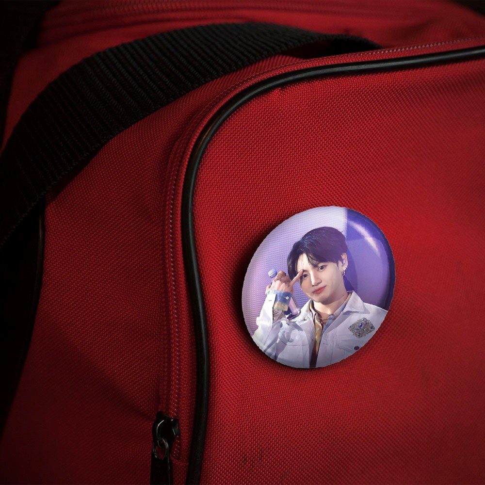 پیکسل 44 میلی متری جونگ کوک Jung Kook گروه بی تی اس BTS خندالو با روکش سلفون حرارتی مات مخملی ضدخش و قطعه پشتی رنگی تولید شده است.پلاستیکی پشت پیکسل با سوزن یک تکه ثابت و بدون لغزش و جا به جایی، ایستایی بسیار بهتری نسبت به پشتی فلزی پیکسل دارند که این مهم در تولید این محصول نیز رعایت شده است.