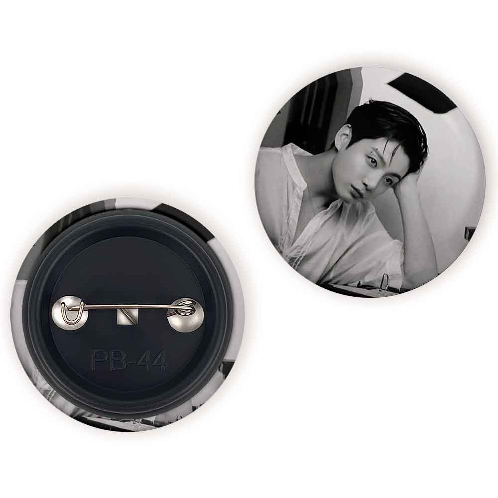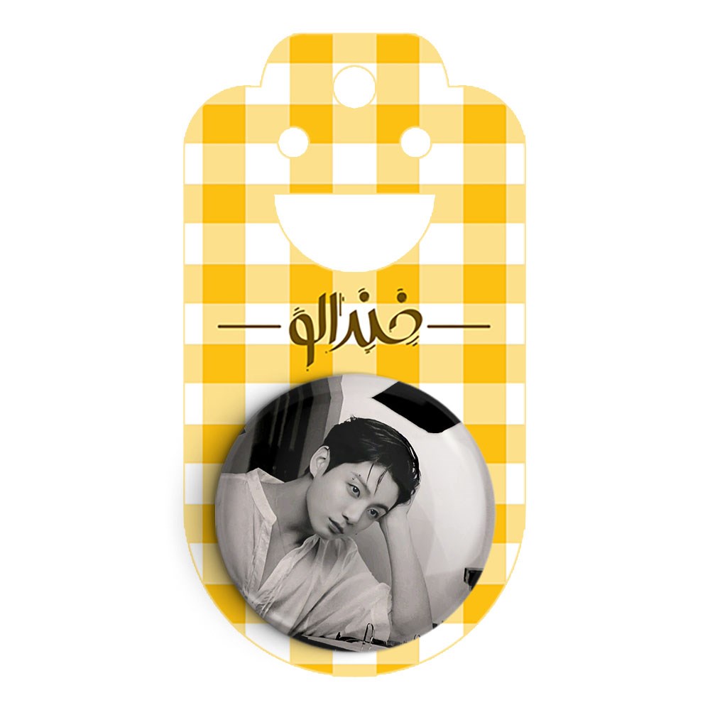 پیکسل 44 میلی متری جونگ کوک Jung Kook گروه بی تی اس BTS خندالو با روکش سلفون حرارتی مات مخملی ضدخش و قطعه پشتی رنگی تولید شده است.پلاستیکی پشت پیکسل با سوزن یک تکه ثابت و بدون لغزش و جا به جایی، ایستایی بسیار بهتری نسبت به پشتی فلزی پیکسل دارند که این مهم در تولید این محصول نیز رعایت شده است.