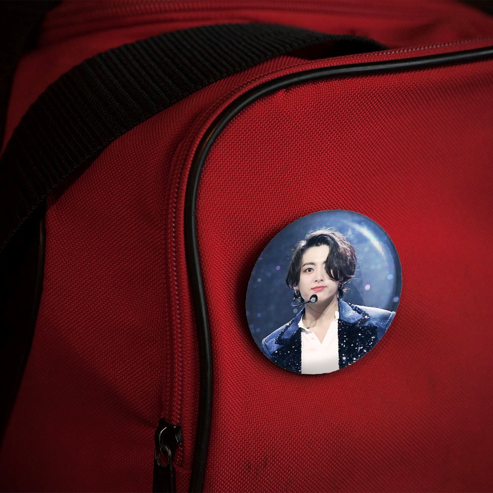 پیکسل 44 میلی متری جونگ کوک Jung Kook گروه بی تی اس BTS خندالو با روکش سلفون حرارتی مات مخملی ضدخش و قطعه پشتی رنگی تولید شده است.پلاستیکی پشت پیکسل با سوزن یک تکه ثابت و بدون لغزش و جا به جایی، ایستایی بسیار بهتری نسبت به پشتی فلزی پیکسل دارند که این مهم در تولید این محصول نیز رعایت شده است.