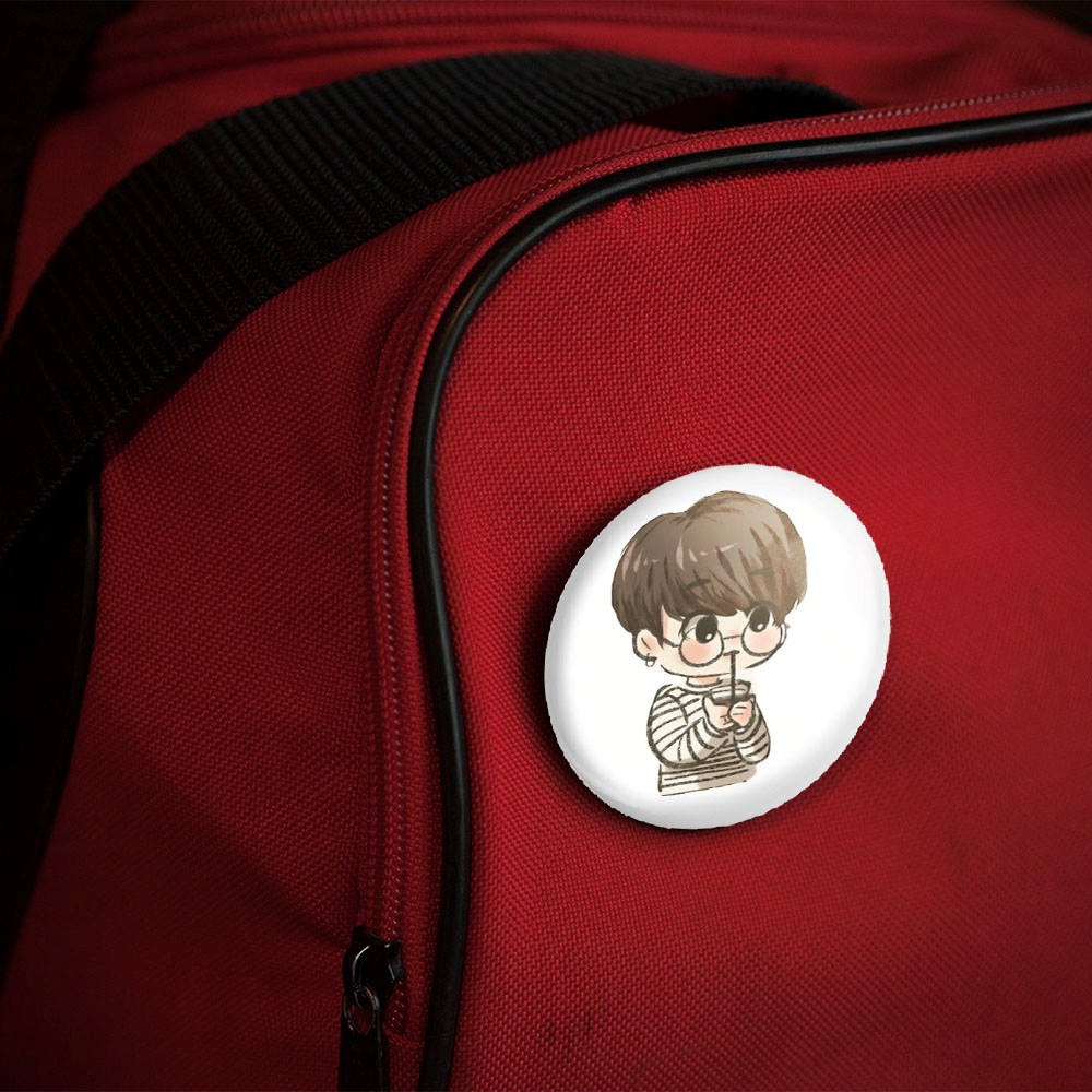 پیکسل 44 میلی متری جونگ کوک Jung Kook گروه بی تی اس BTS خندالو با روکش سلفون حرارتی مات مخملی ضدخش و قطعه پشتی رنگی تولید شده است.پلاستیکی پشت پیکسل با سوزن یک تکه ثابت و بدون لغزش و جا به جایی، ایستایی بسیار بهتری نسبت به پشتی فلزی پیکسل دارند که این مهم در تولید این محصول نیز رعایت شده است.