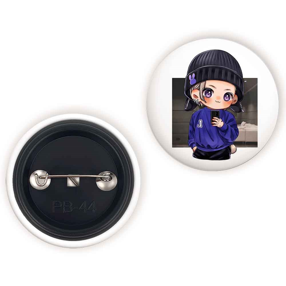 پیکسل 44 میلی متری جونگ کوک Jung Kook گروه بی تی اس BTS خندالو با روکش سلفون حرارتی مات مخملی ضدخش و قطعه پشتی رنگی تولید شده است.پلاستیکی پشت پیکسل با سوزن یک تکه ثابت و بدون لغزش و جا به جایی، ایستایی بسیار بهتری نسبت به پشتی فلزی پیکسل دارند که این مهم در تولید این محصول نیز رعایت شده است.