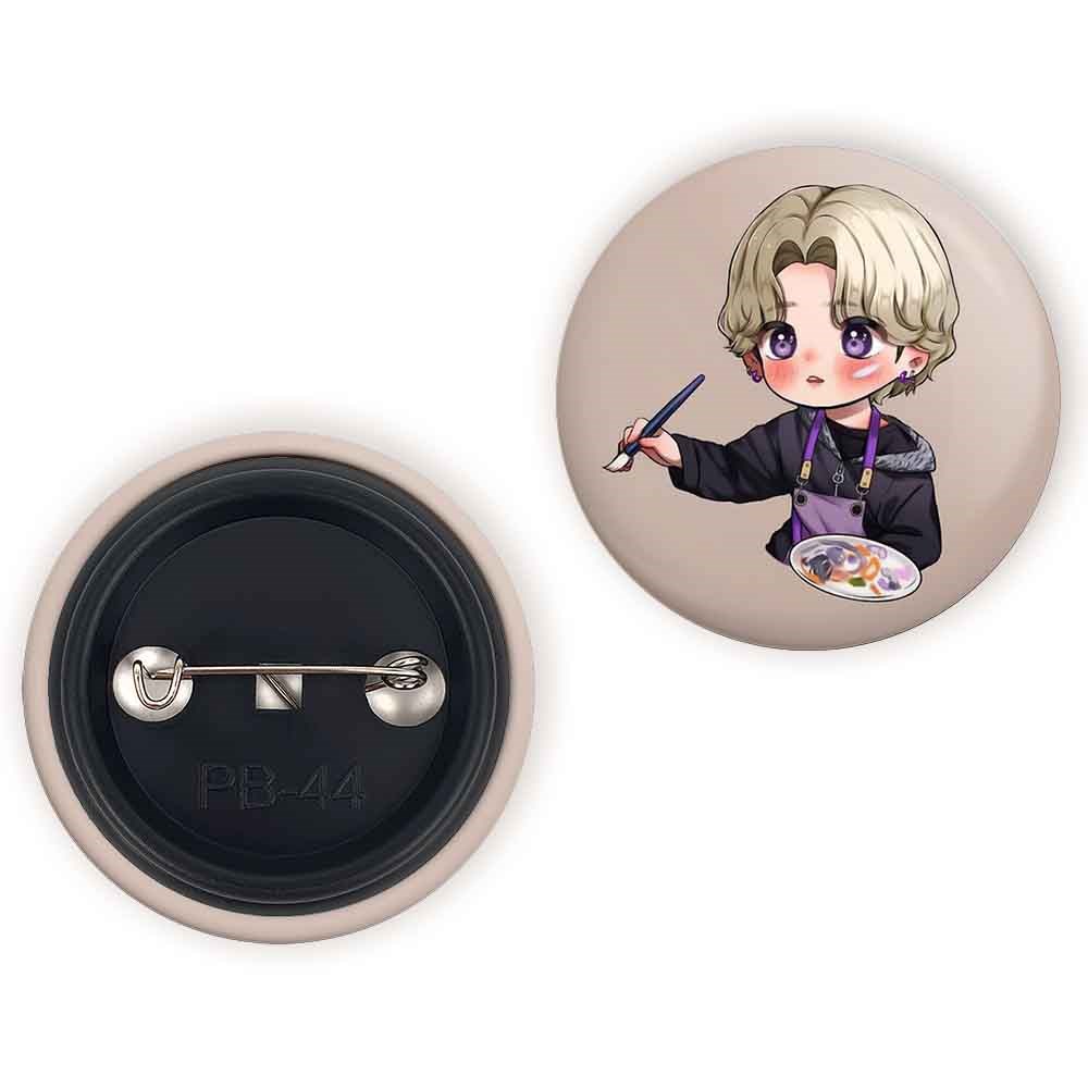 پیکسل 44 میلی متری جونگ کوک Jung Kook گروه بی تی اس BTS خندالو با روکش سلفون حرارتی مات مخملی ضدخش و قطعه پشتی رنگی تولید شده است.پلاستیکی پشت پیکسل با سوزن یک تکه ثابت و بدون لغزش و جا به جایی، ایستایی بسیار بهتری نسبت به پشتی فلزی پیکسل دارند که این مهم در تولید این محصول نیز رعایت شده است.