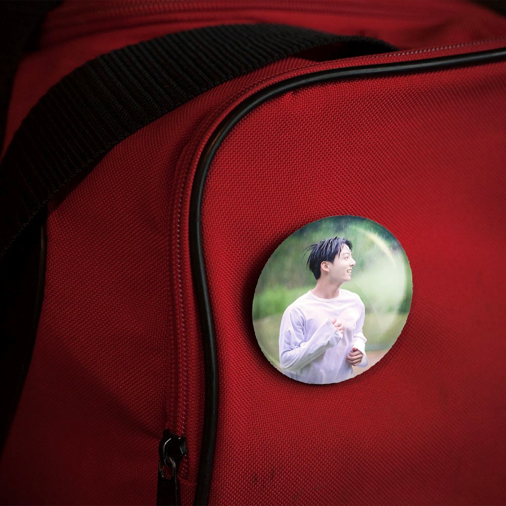پیکسل 44 میلی متری جونگ کوک Jung Kook گروه بی تی اس BTS خندالو با روکش سلفون حرارتی مات مخملی ضدخش و قطعه پشتی رنگی تولید شده است.پلاستیکی پشت پیکسل با سوزن یک تکه ثابت و بدون لغزش و جا به جایی، ایستایی بسیار بهتری نسبت به پشتی فلزی پیکسل دارند که این مهم در تولید این محصول نیز رعایت شده است.