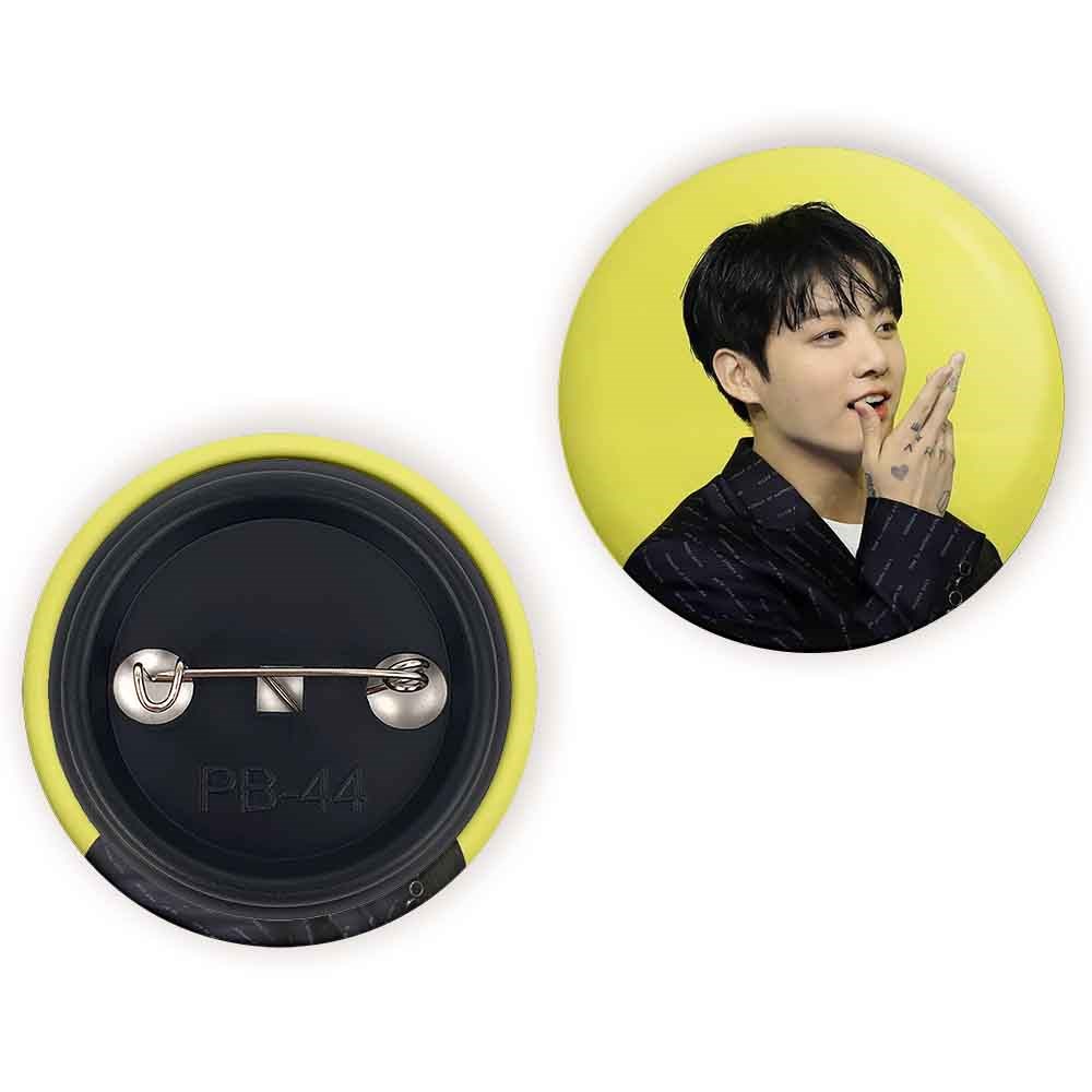 پیکسل 44 میلی متری جونگ کوک Jung Kook گروه بی تی اس BTS خندالو با روکش سلفون حرارتی مات مخملی ضدخش و قطعه پشتی رنگی تولید شده است.پلاستیکی پشت پیکسل با سوزن یک تکه ثابت و بدون لغزش و جا به جایی، ایستایی بسیار بهتری نسبت به پشتی فلزی پیکسل دارند که این مهم در تولید این محصول نیز رعایت شده است.