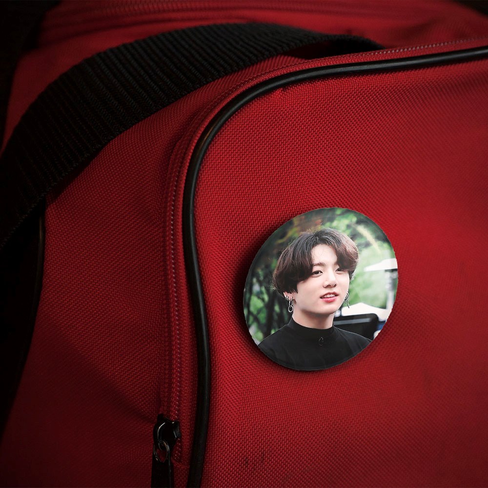 پیکسل 44 میلی متری جونگ کوک Jung Kook گروه بی تی اس BTS خندالو با روکش سلفون حرارتی مات مخملی ضدخش و قطعه پشتی رنگی تولید شده است.پلاستیکی پشت پیکسل با سوزن یک تکه ثابت و بدون لغزش و جا به جایی، ایستایی بسیار بهتری نسبت به پشتی فلزی پیکسل دارند که این مهم در تولید این محصول نیز رعایت شده است.