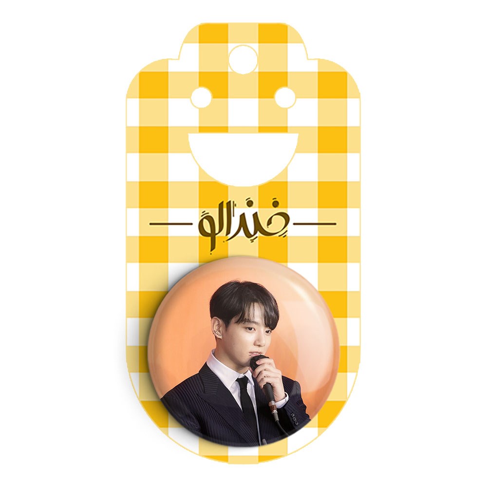پیکسل 44 میلی متری جونگ کوک Jung Kook گروه بی تی اس BTS خندالو با روکش سلفون حرارتی مات مخملی ضدخش و قطعه پشتی رنگی تولید شده است.پلاستیکی پشت پیکسل با سوزن یک تکه ثابت و بدون لغزش و جا به جایی، ایستایی بسیار بهتری نسبت به پشتی فلزی پیکسل دارند که این مهم در تولید این محصول نیز رعایت شده است.