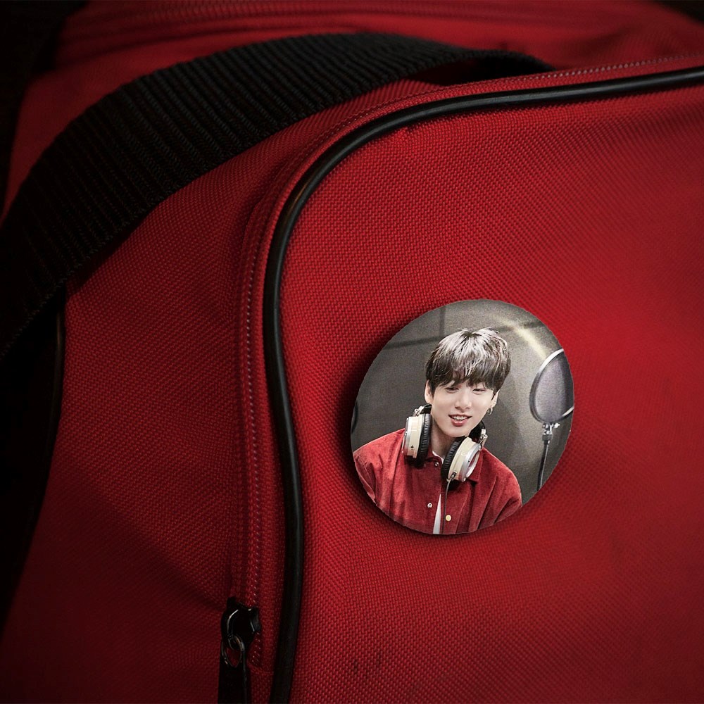 پیکسل 44 میلی متری جونگ کوک Jung Kook گروه بی تی اس BTS خندالو با روکش سلفون حرارتی مات مخملی ضدخش و قطعه پشتی رنگی تولید شده است.پلاستیکی پشت پیکسل با سوزن یک تکه ثابت و بدون لغزش و جا به جایی، ایستایی بسیار بهتری نسبت به پشتی فلزی پیکسل دارند که این مهم در تولید این محصول نیز رعایت شده است.
