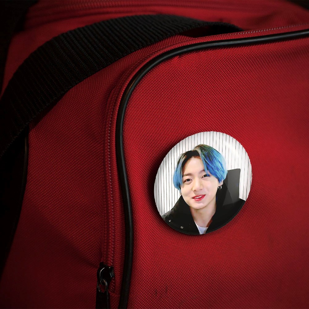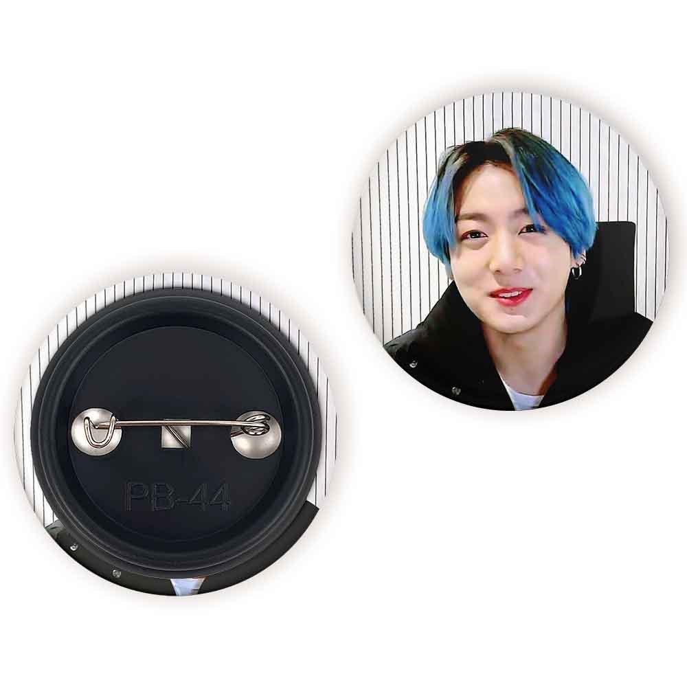 پیکسل 44 میلی متری جونگ کوک Jung Kook گروه بی تی اس BTS خندالو با روکش سلفون حرارتی مات مخملی ضدخش و قطعه پشتی رنگی تولید شده است.پلاستیکی پشت پیکسل با سوزن یک تکه ثابت و بدون لغزش و جا به جایی، ایستایی بسیار بهتری نسبت به پشتی فلزی پیکسل دارند که این مهم در تولید این محصول نیز رعایت شده است.